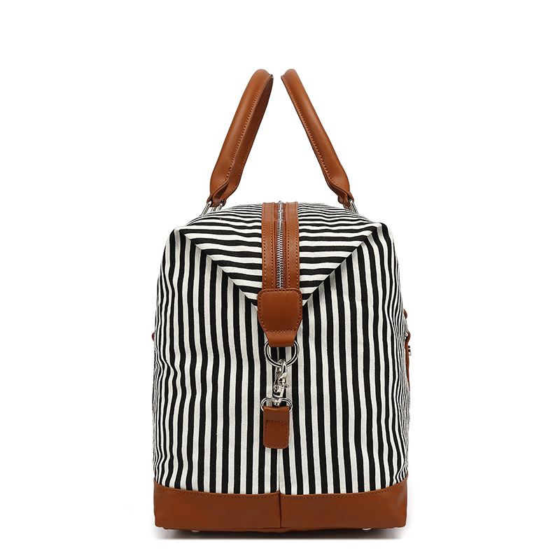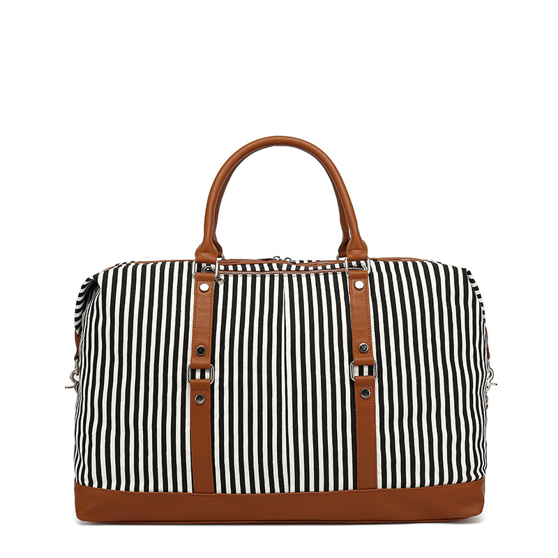 Design: Striped Canvas Travel Bag is made of waterproof canvas and top-quality PU leather that can protect all your stuffs from getting wet during a travelling in a rainy day, It is a great choice for outdoors activities.