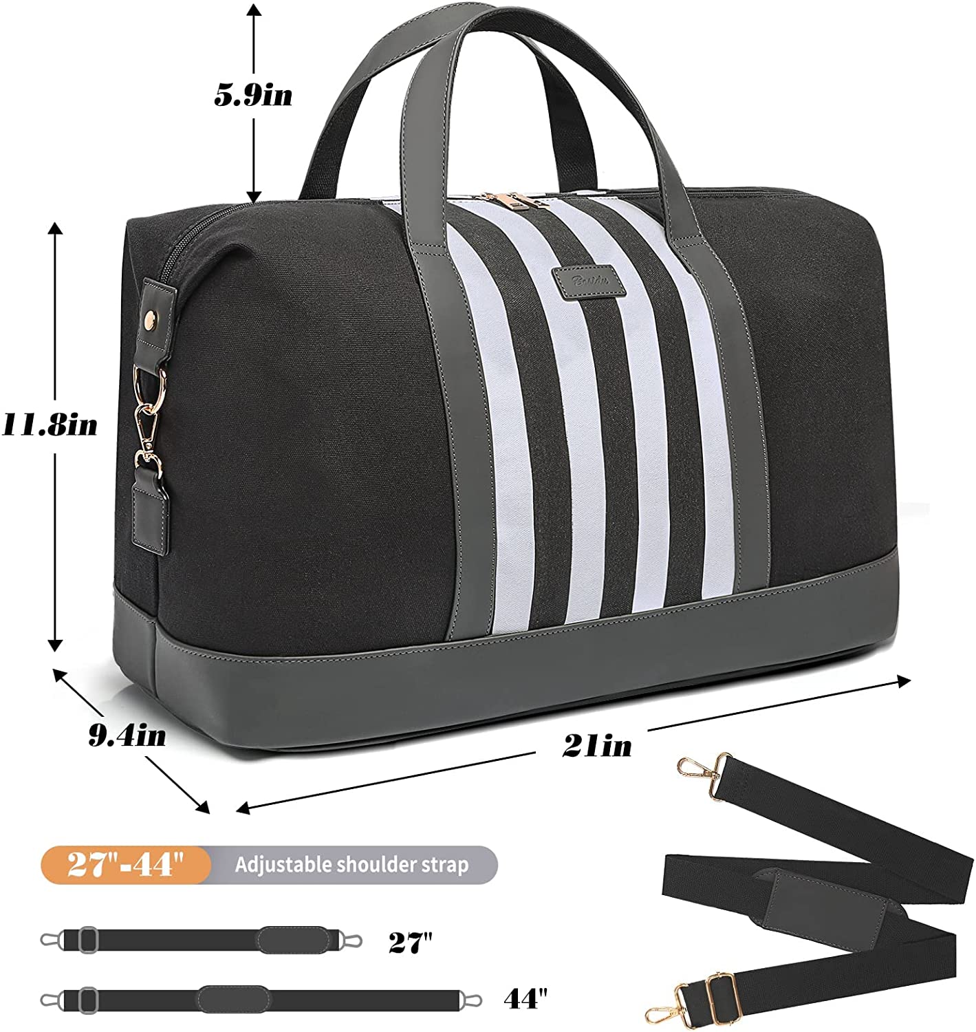 Black Travel Duffle Weekender Bag for Women with Trolley Sleeve