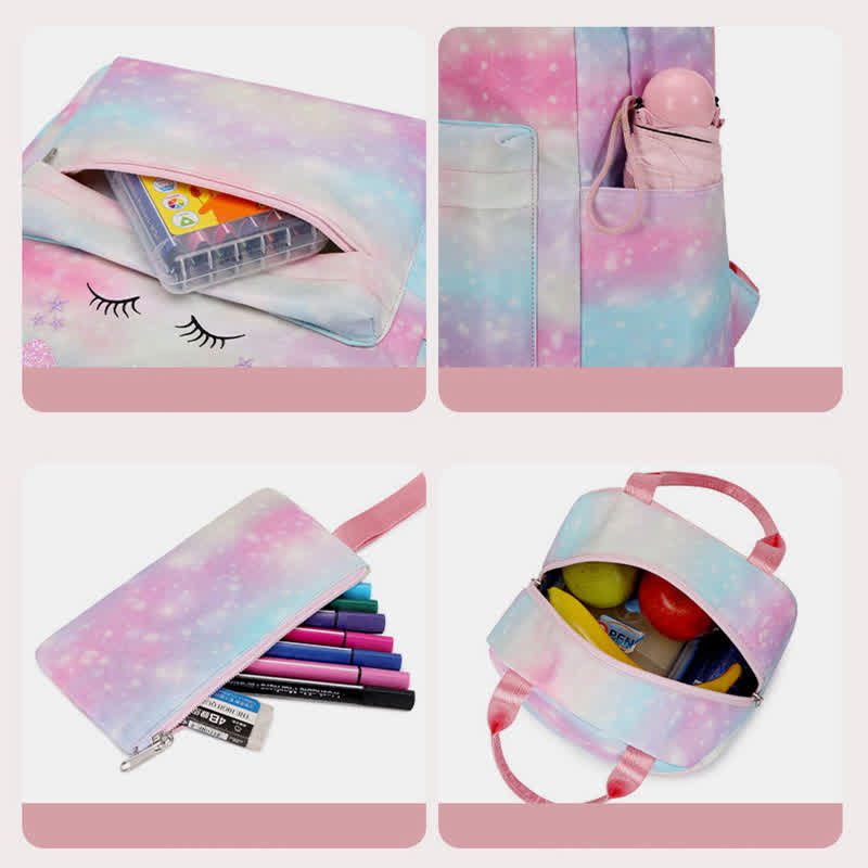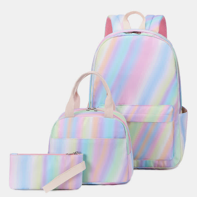 Girls Backpack Kids School Rainbow Bookbag 3 in 1 Set School Bag