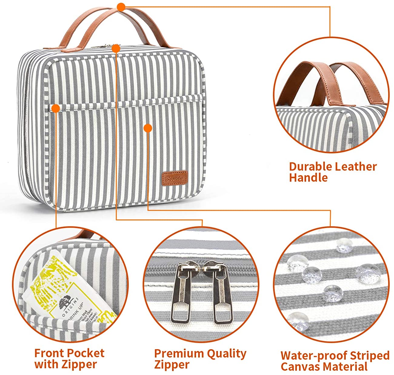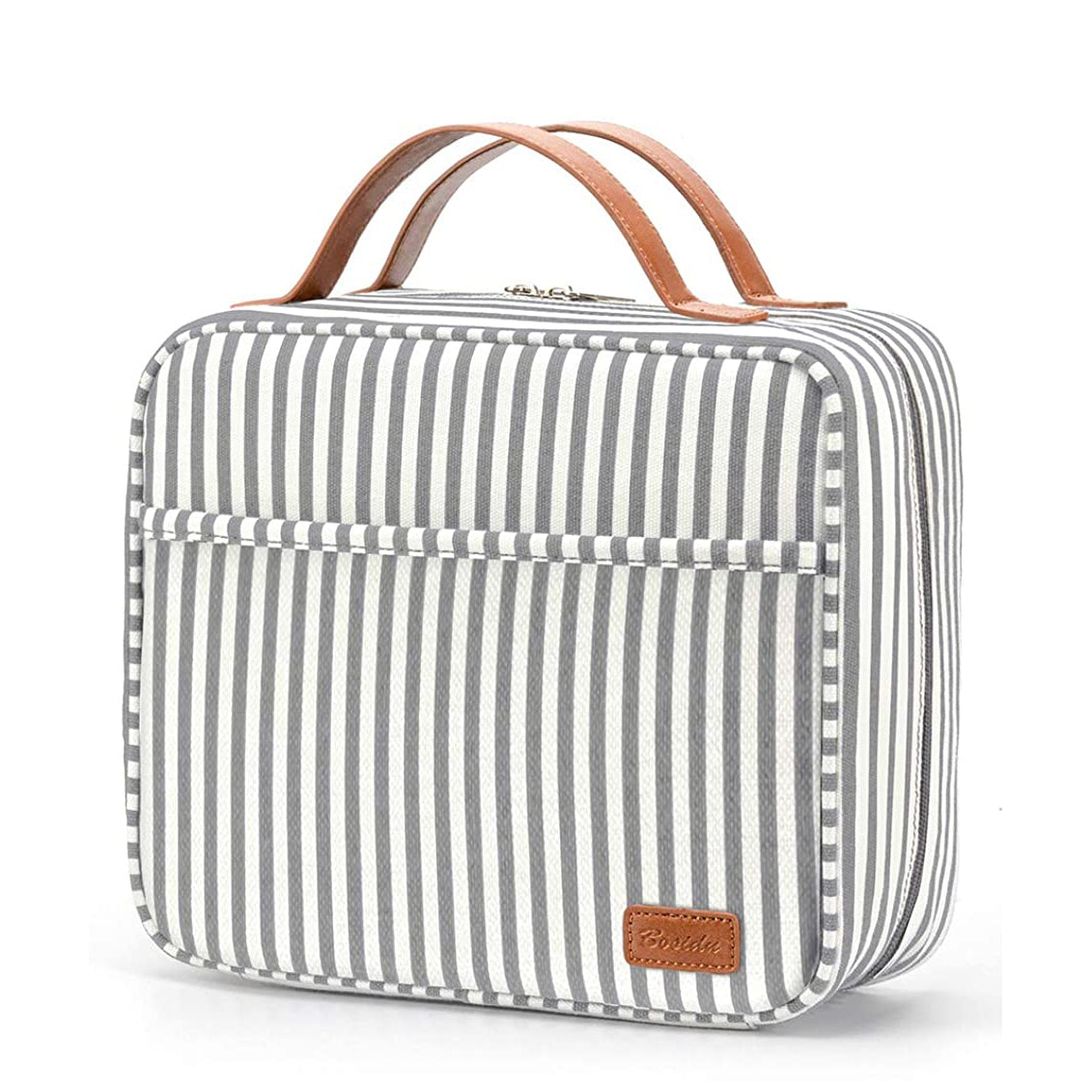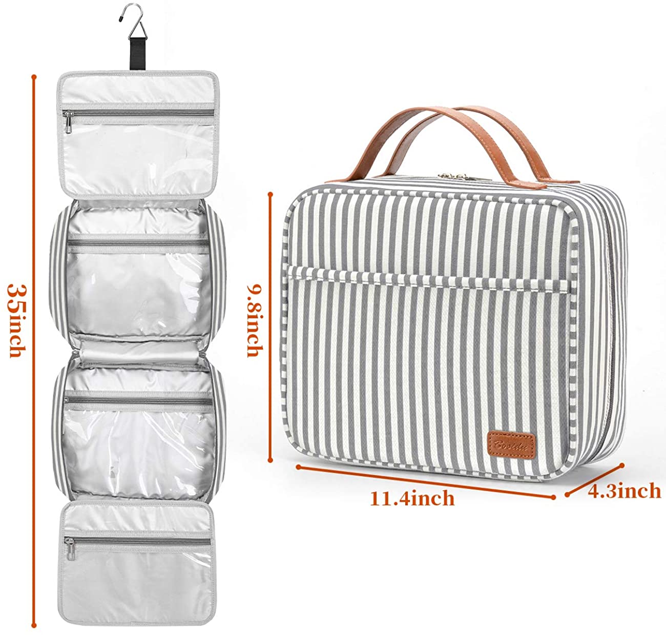 Large Waterproof Fashionable Striped Travel Toiletry Bag for Women-Grey