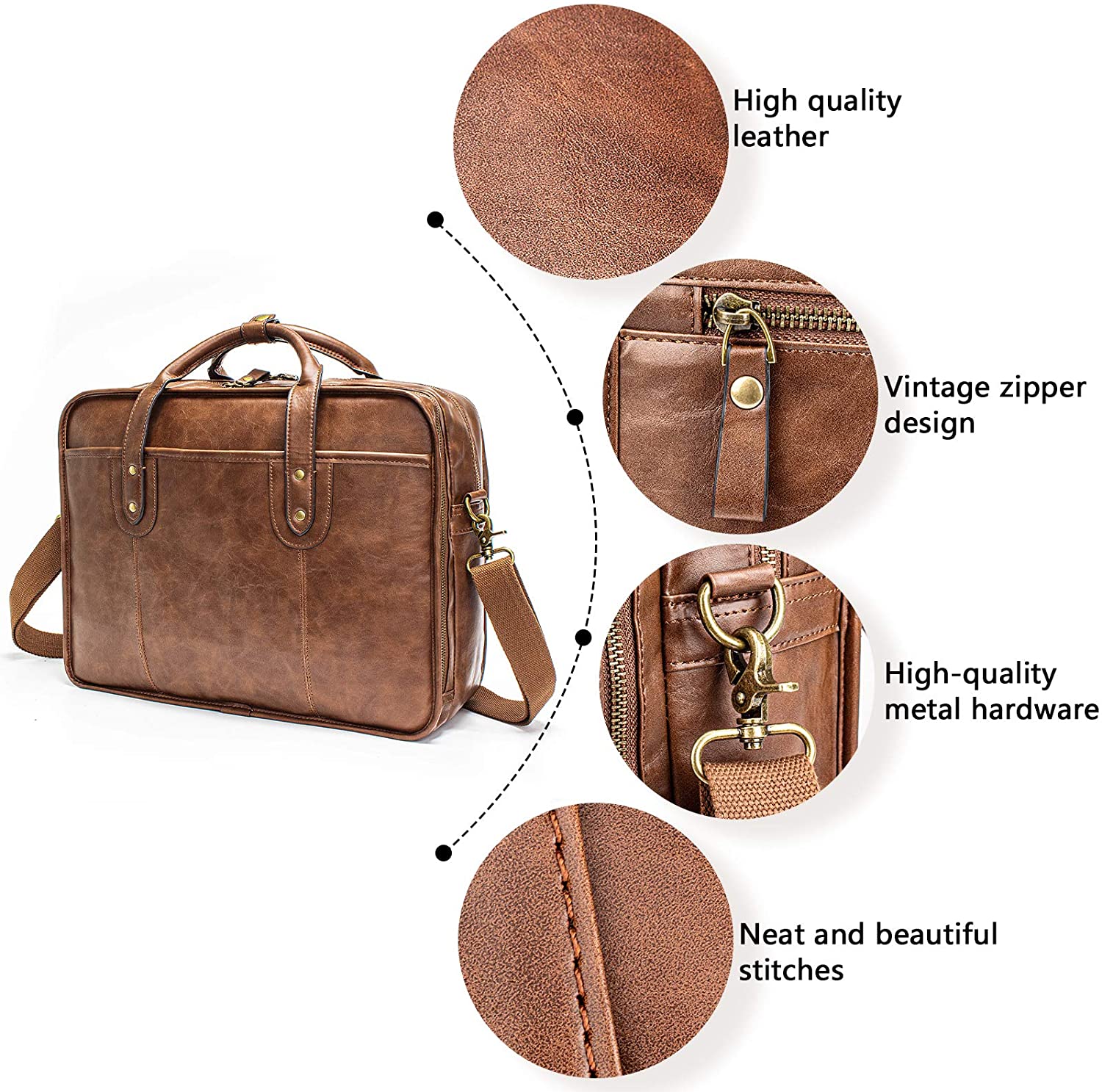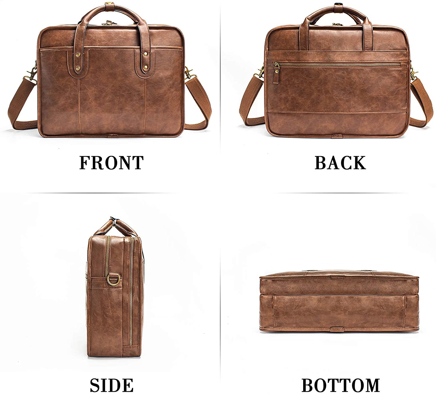 The 15.6-inch laptop vintage leather briefcase is the perfect companion for professional business people. Its appearance is clean and tidy, retro and fashionable. It can be used in various occasions and can be combined with a variety of personal styles. Whether you are a digital nomad, business person or college student, this multi-compartment laptop bag will be your wise choice.