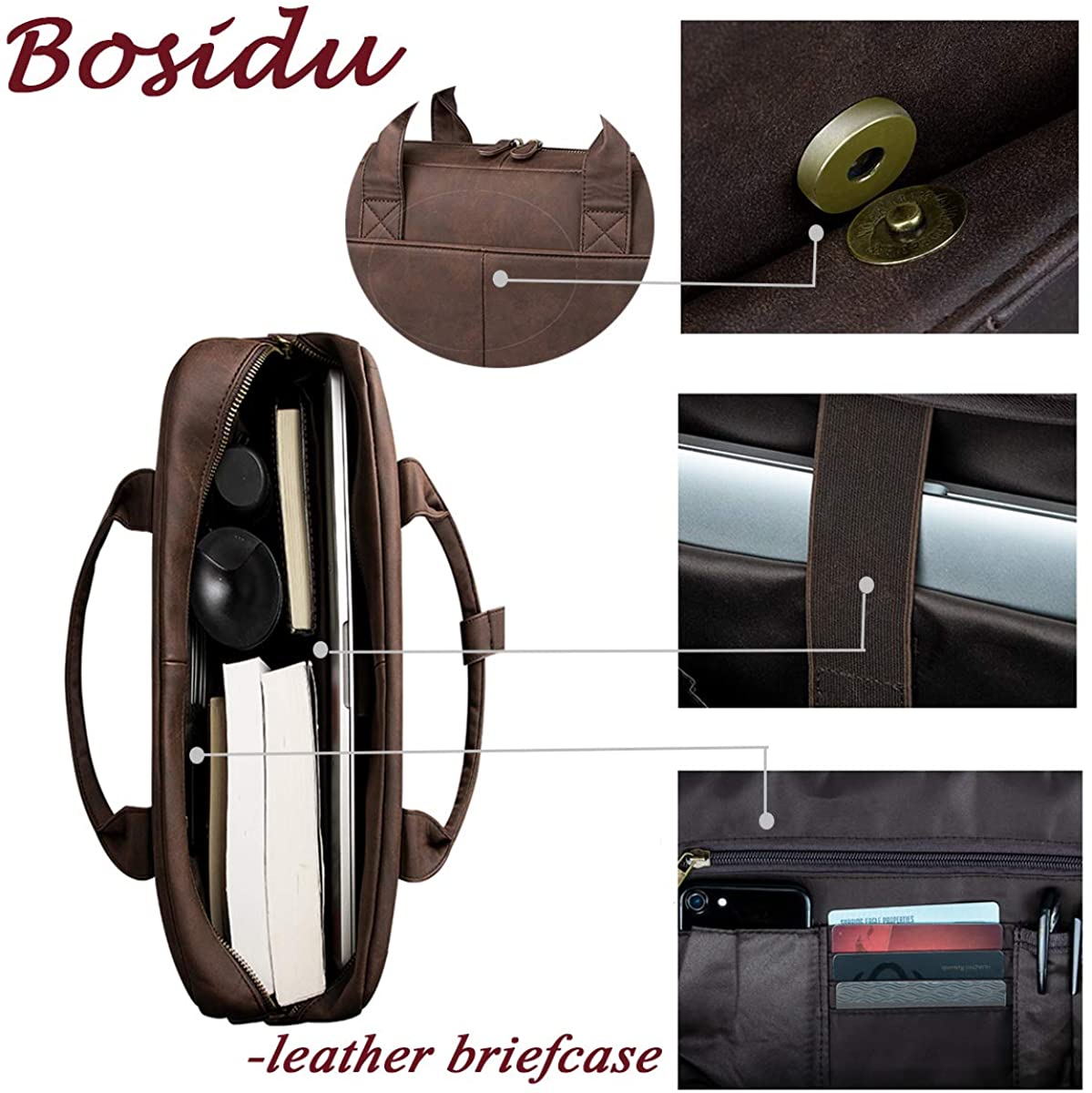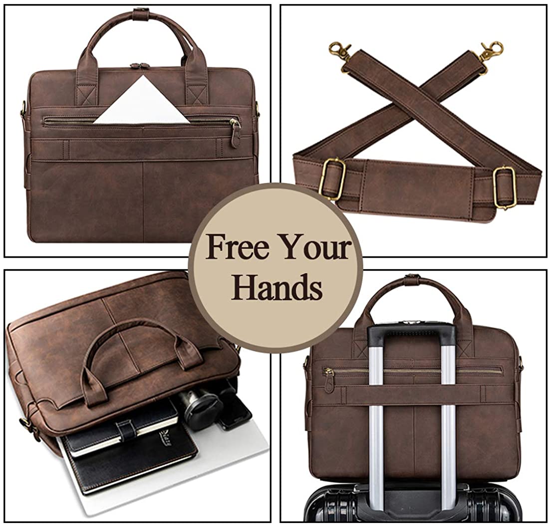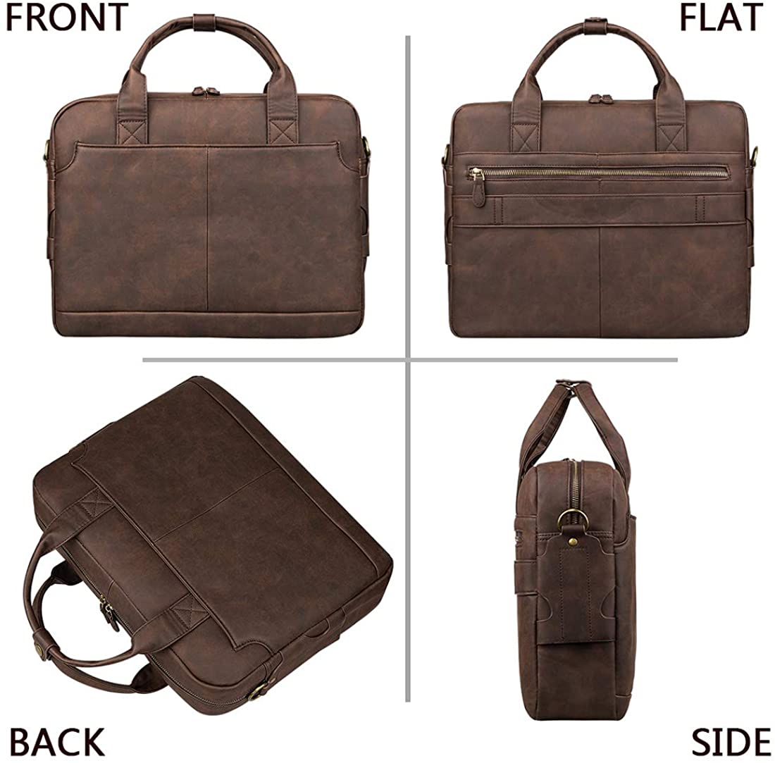 - 【Upgrade Hardware and Internal Design】This briefcases for men use high quality bronze material to ensure quality and reliability.The central laptop pocket can fits 14-15.6 inch laptop and has durable laptop lining.The leather laptop bag for men with large capacity,front,back and interior pockets organization for all your business needs.