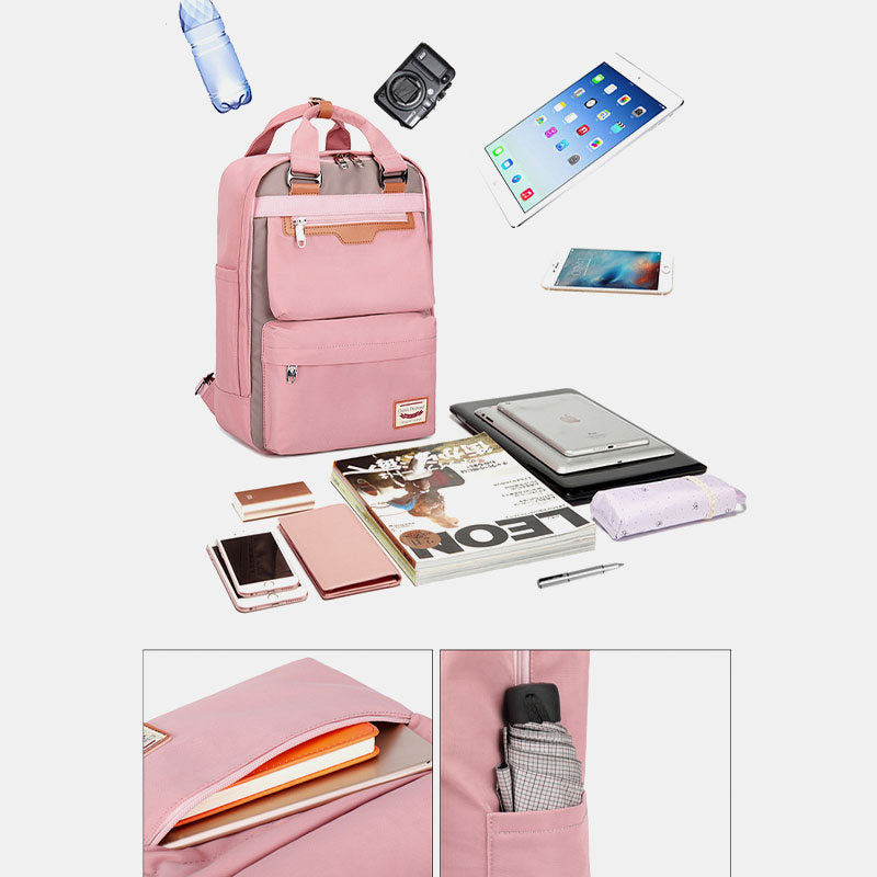 Multi-Pocket Color Block Fashion Patchwork Backpack