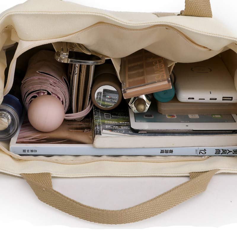 Reusable Versatile Canvas Tote Bag Water Resistant Crossbody Shoulder Bag