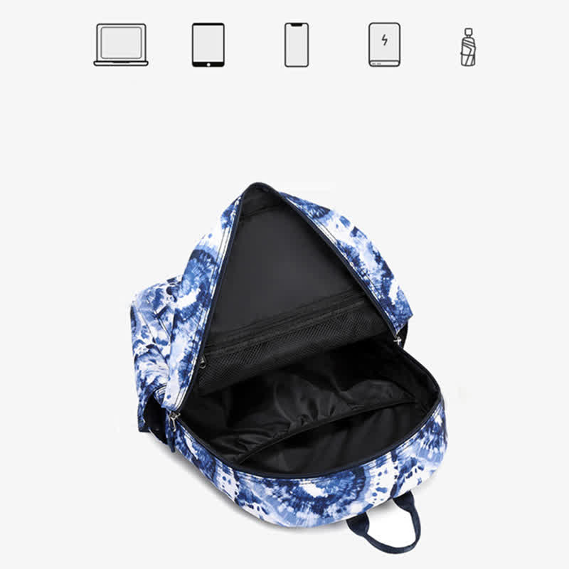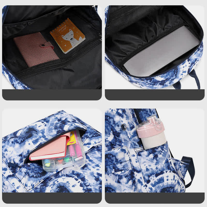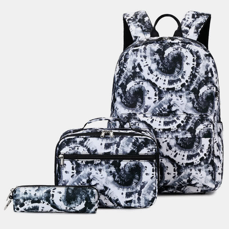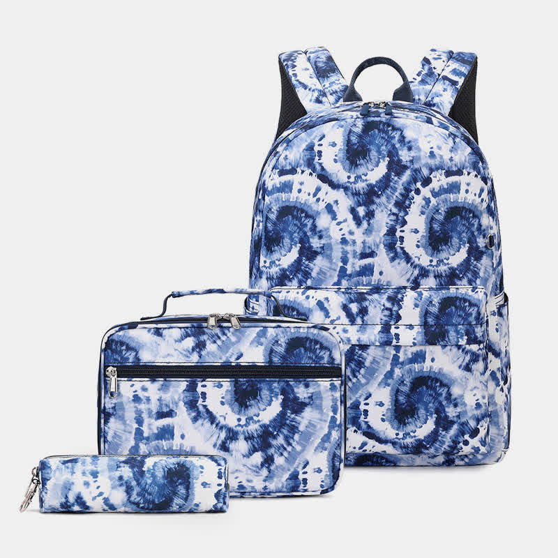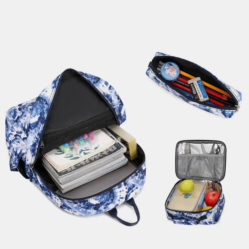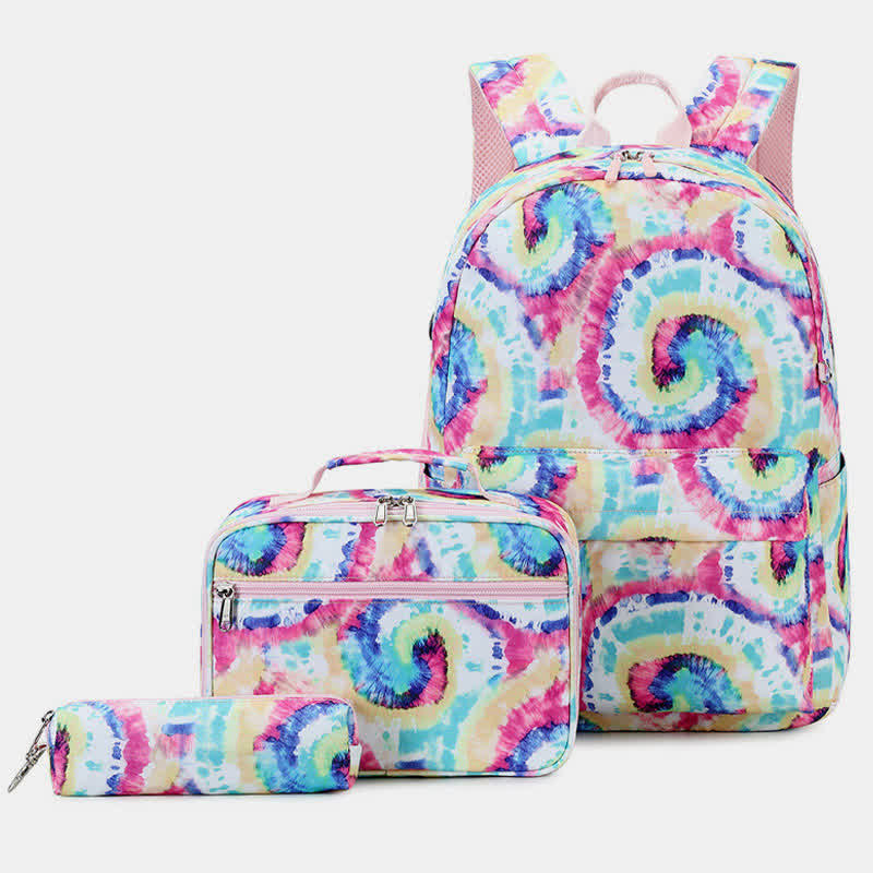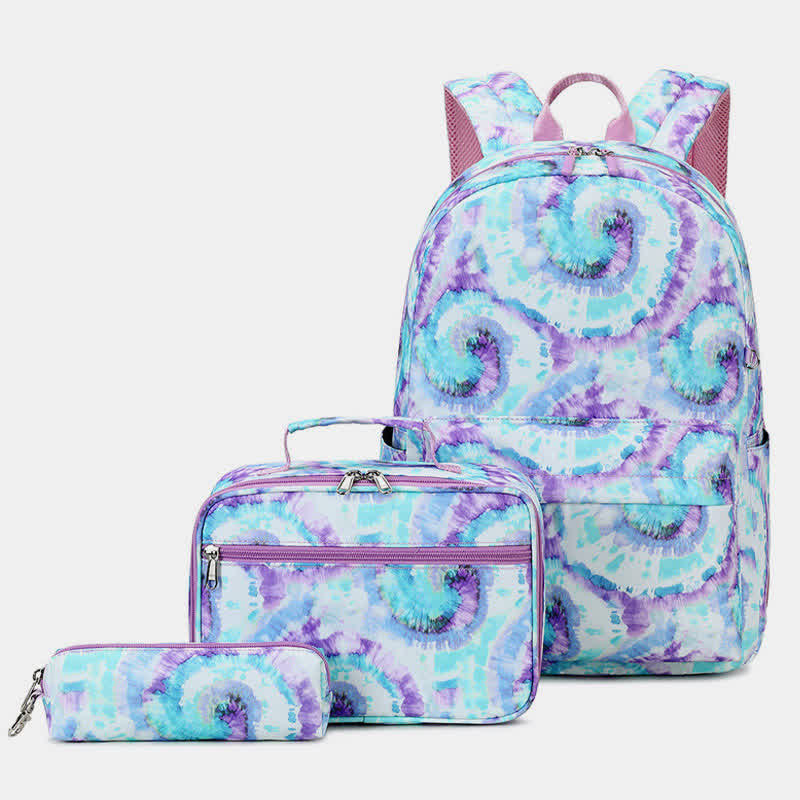 School Backpack Set 3 Pieces Tie-dye Girls Bookbags Lunch Bag Pencil Case