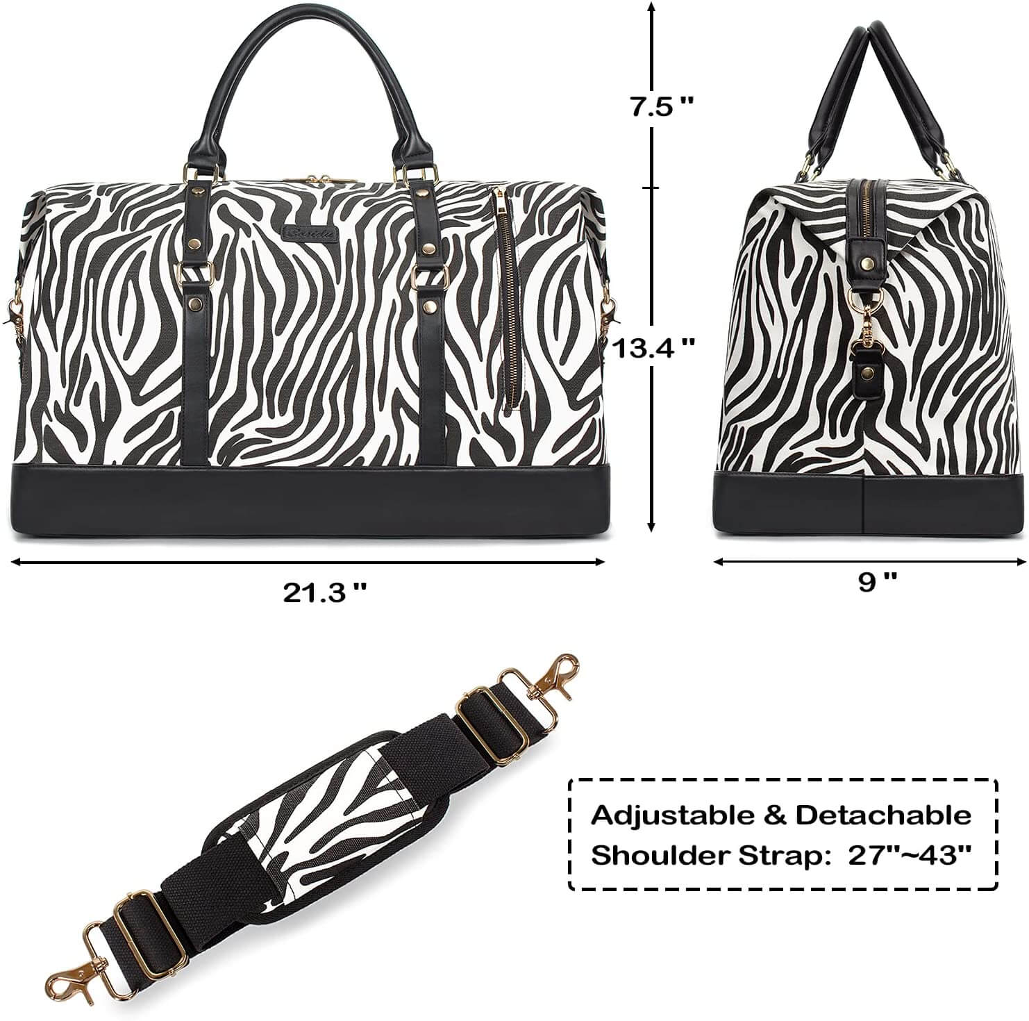 Length: 27”~43”. This large size travel duffel bag for women is equipped with widen sturdy shoulder strap, and it has a cushion cover to help reduce the pain of your shoulders. The duffel bag also has two adjustable buckles, you can adjust in both directions so as to keep the pad in the right place of your shoulder.