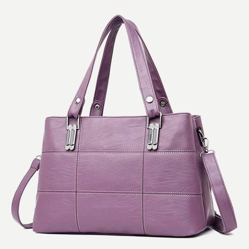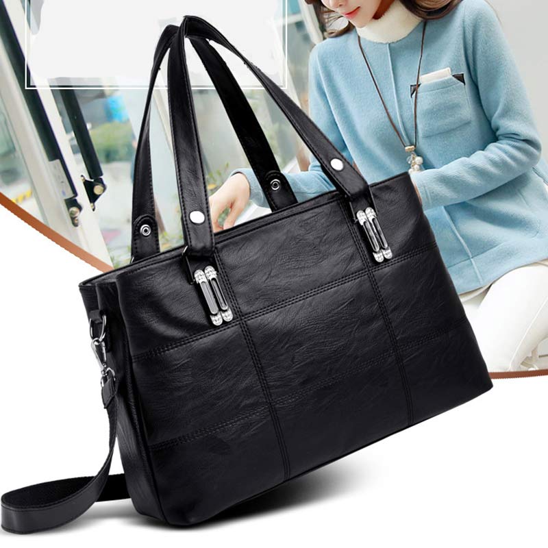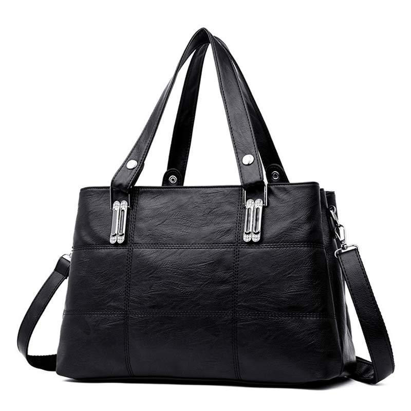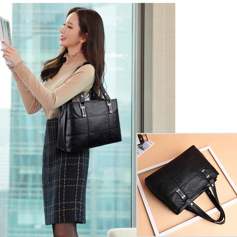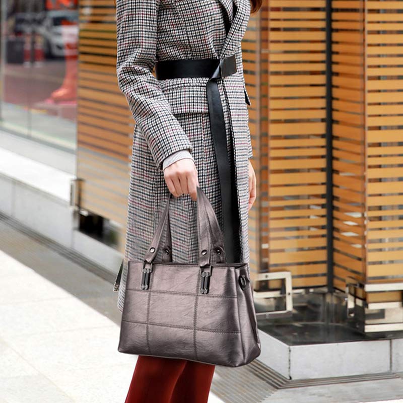 Triple Compartment Women Leather Tote Shoulder Handbag with Crossbody Strap