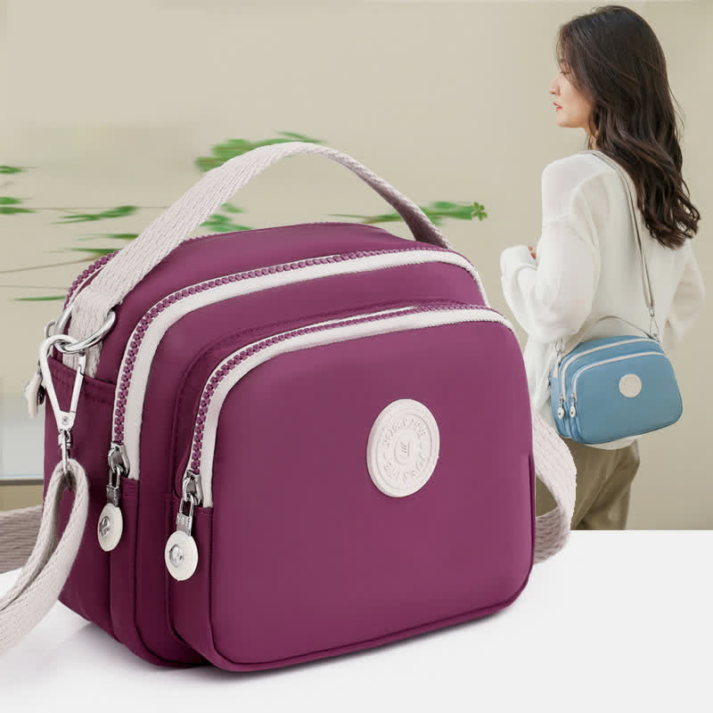 Triple Zip Small Handbag for Women Lightweight Waterproof Crossbody Shoulder Bag